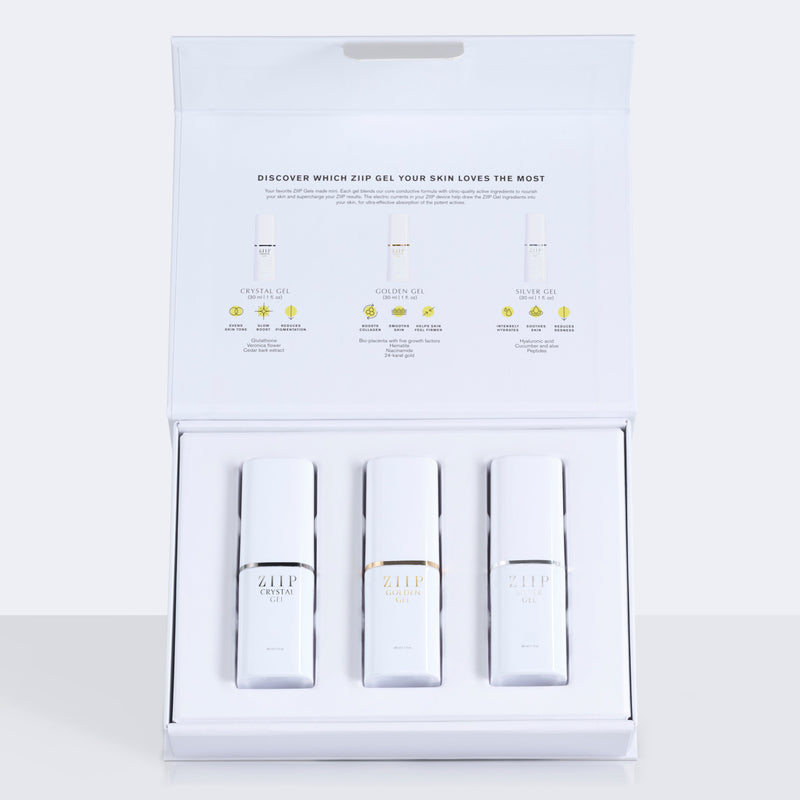 Your favorite ZIIP Gels made mini. Each gel blends our core conductive formula with clinic-quality active ingredients to nourish your skin and supercharge your ZIIP results.